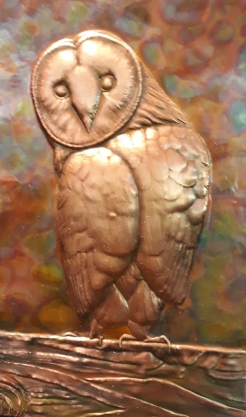 Copper Single Barn Owl, Flame Painted